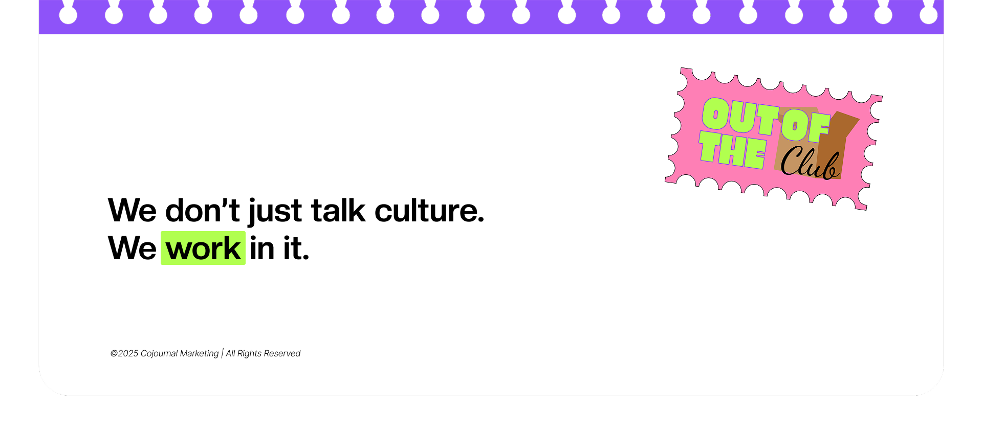 We work with ambitious brands, emerging or established, across industries. From challenger startups to legacy businesses looking for fresh perspective, if you value strategic thinking and clean execution, we’ll likely get along.